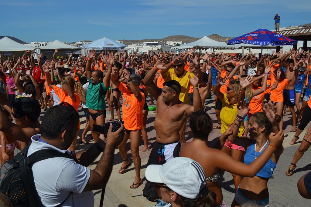 La consegna del pacco-gara nonchè il riscaldamento collettivo a ritmo di Zumba, la sfilata delle nazioni partecipanti e l’accesso alle barche che l’organizzazione mette a disposizione per trasportare tutti i nuotatori partecipanti al punto di partenza, avviene sul piazzale del molo di Caleta de Sebo.
