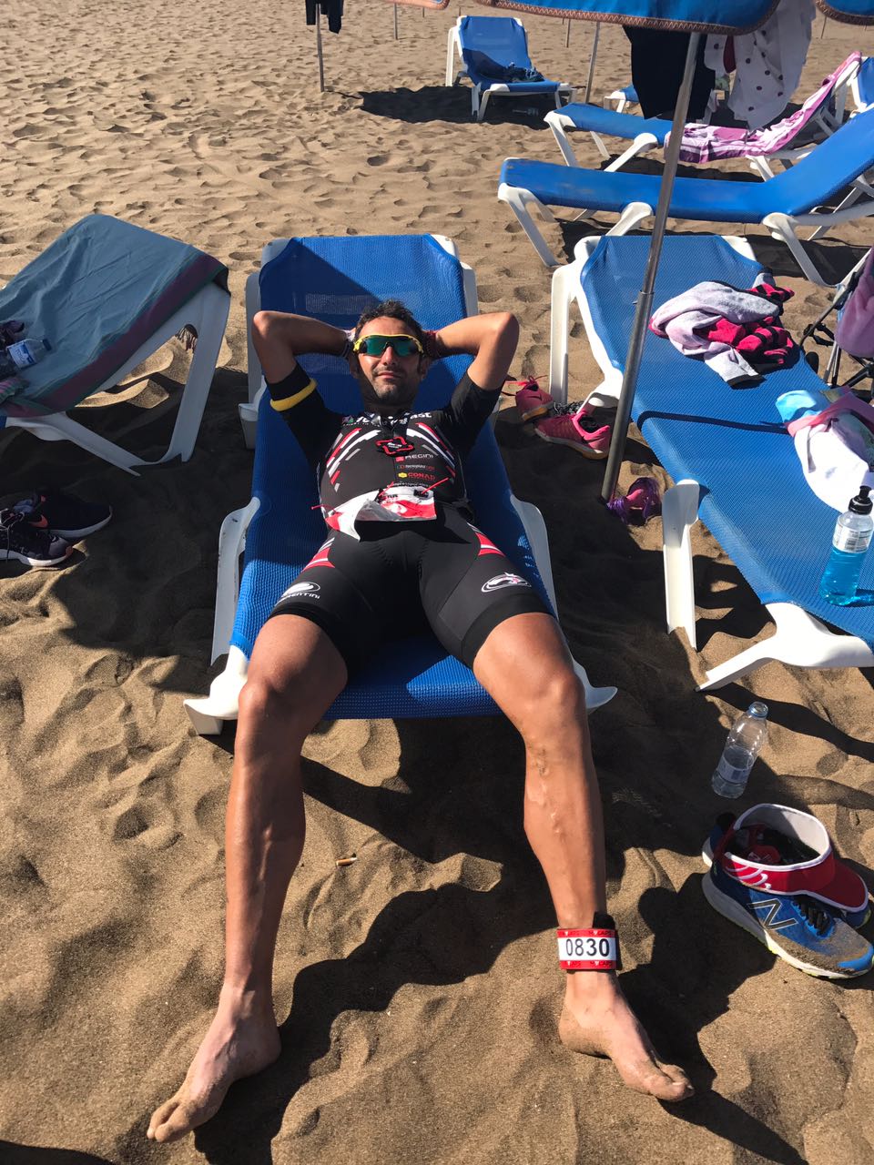 Ci ha salutati e ha proseguito nella sua corsa impeccabile fino al traguardo, finendo l’IronMan Lanzarote, il piú difficile al mondo, in 10 ore e 20 minuti, 71º tra gli uomini e 4º tra gli italiani in gara, mancando per soli 35 minuti la qualificazione per il Campionato del Mondo delle Hawaii.